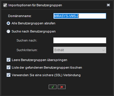 8. Wählen Sie im Fenster Benutzergruppen importieren die Benutzergruppen aus, die Sie aus der Domäne importieren möchten.