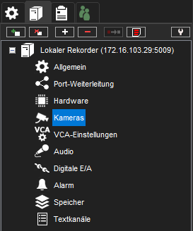 2. Doppelklicken Sie auf den Punkt "Kameras", um das Fenster "Kameraeinstellungen" zu öffnen.