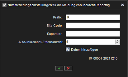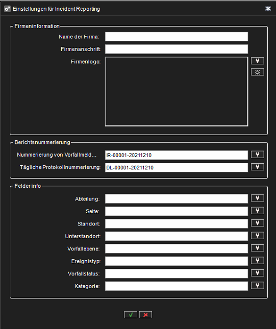 In den Vorfallberichtseinstellungen definiert der Benutzer die Parameter vor, die beim Anzeigen oder Exportieren der Vorfall- oder Tagesprotokollberichte verwendet werden.