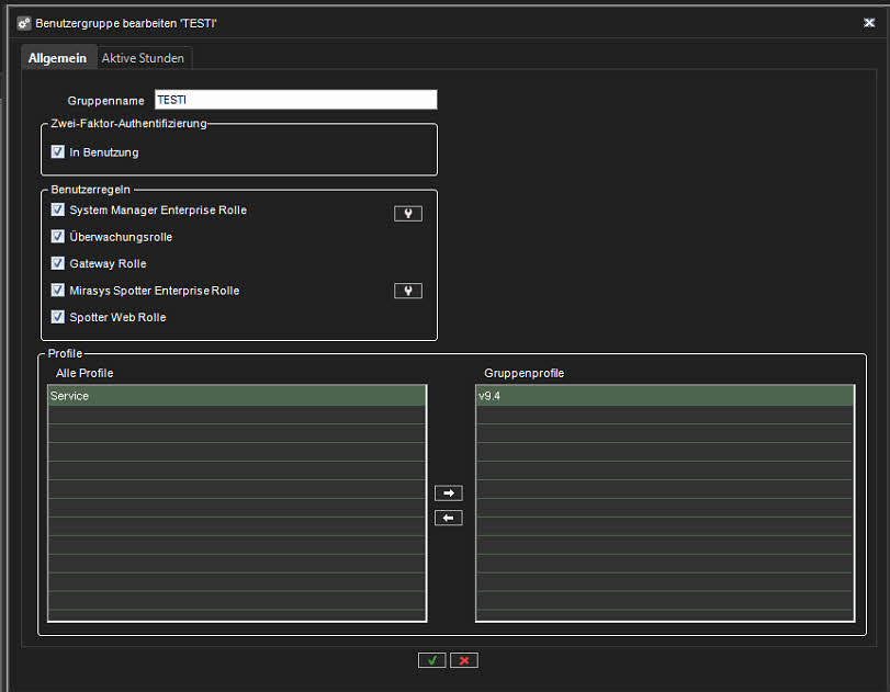 Gateway-Rolle: ist diese Rolle aktiv, kann die Benutzergruppe auf das DVMS-Gateway zugreifen