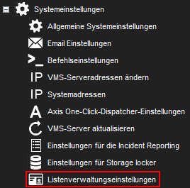 Doppelklicken Sie unter Systemeinstellungen auf den Baumknoten Listenverwaltungseinstellungen, wie in der Abbildung unten dargestellt: