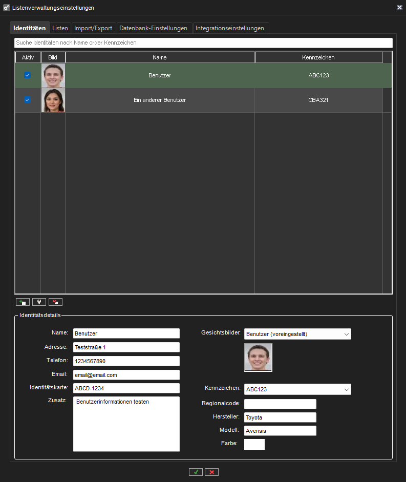 Hinzufügen, Bearbeiten und Löschen von Identitäten mit Nummernschildern und Gesichtsbildern