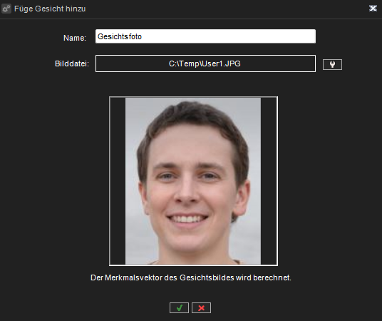 Um ein Gesichtsbild hinzuzufügen, klicken Sie auf die Schaltfläche "Neues Gesichtsbild hinzufügen" und der folgende Dialog wird geöffnet:
