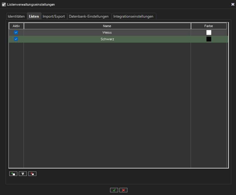 Listen - Identitätslisten und deren Einstellungen