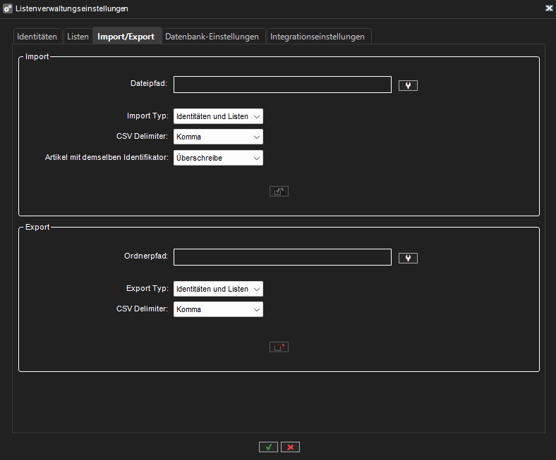 Import und Export von Listen und Identitäten