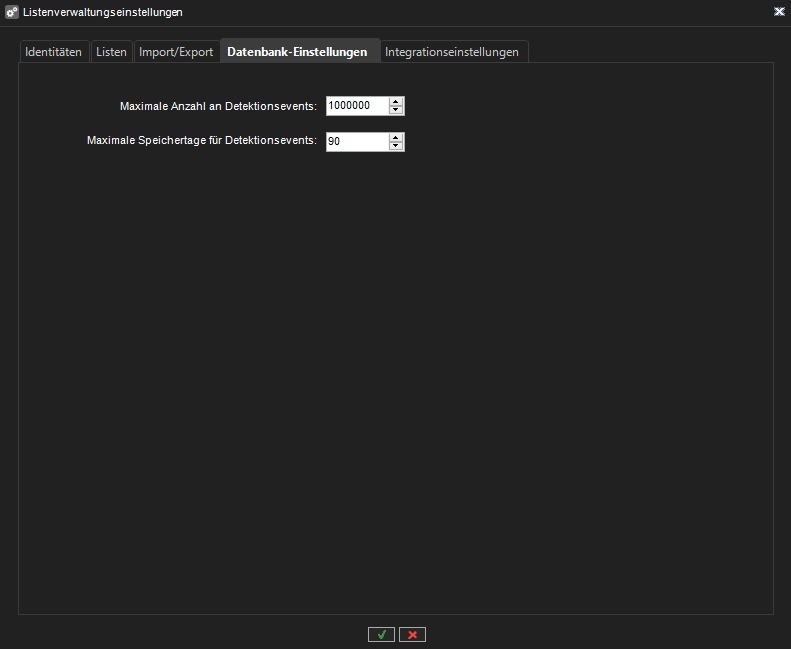 Auf der Registerkarte "Datenbankeinstellungen" können Sie die Datenbankeinstellungen für den Listenverwaltungsdienst festlegen: