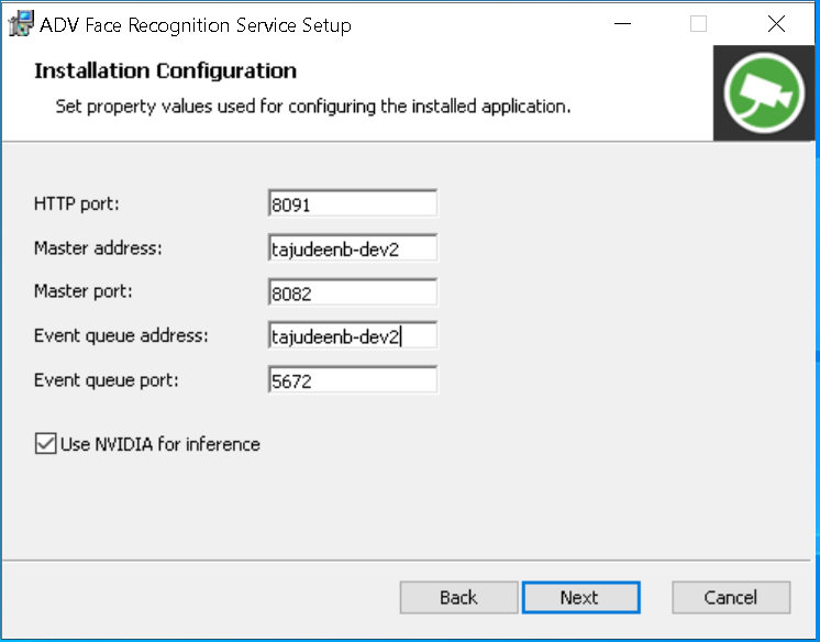 If Face Recognition Service is installed on other machine specifying the name or IP address of the machine using the Face Recognition Service (in this case, tajudeenb-dev2 is using Face Recognition Service from some other machine)