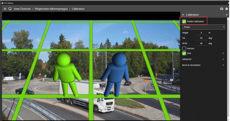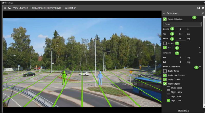 Calibrating a channel is necessary in order to estimate object parameters such as height, area, speed and classification.