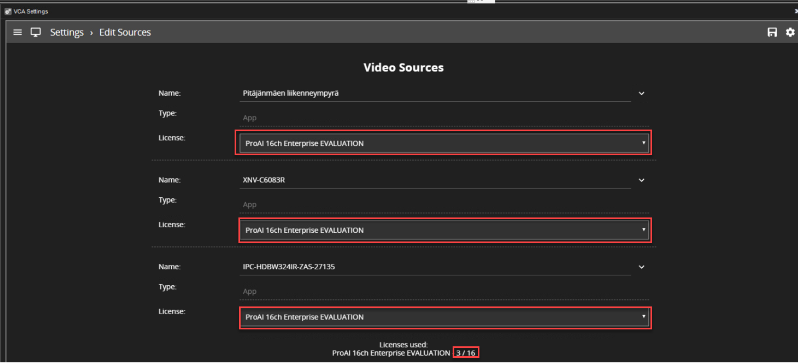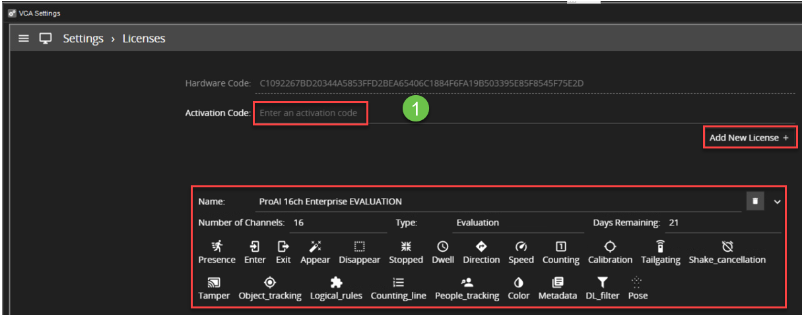 Users can also see the type of the VCA license and how many channels have been used for the VCA license.