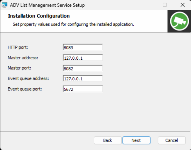 Event queue -osoite on sama osoite, johon listojen hallinta palvelu on asentuu. Pidä tämä oletuksena.