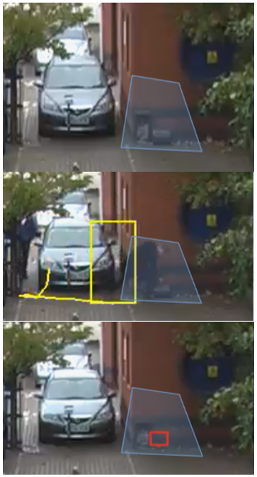 Alla on esimerkkiskenaario, jossa pussi jätetään määritellylle alueelle, jolloin sääntö aktivoituu.