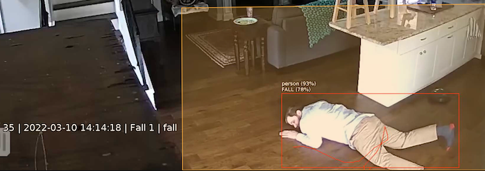 Fall (Kaatumis) -sääntö havaitsee, kun Deep Learning People Trackerin henkilöiksi luokittelema kohde on kaatunut.