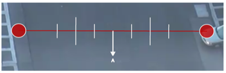 Jotta käyttäjä voi määrittää laskentalinjan kalibroinnin tarkemmin, havaittujen kohteiden leveydet näytetään päällekkäin laskentalinjan vieressä, kun kohteet kulkevat sen yli.