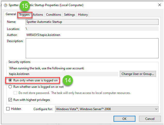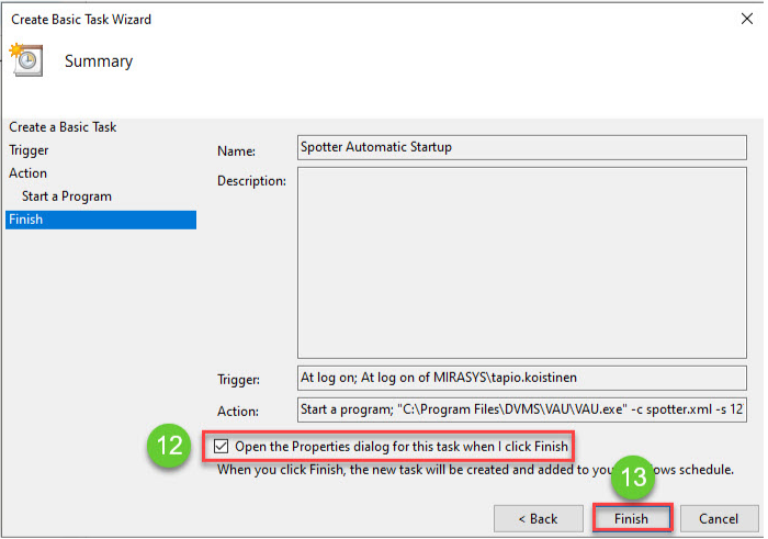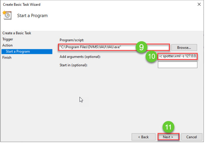 Enter -c spotter.xml -s 127.0.0.1 to the Add arguments(optional) field