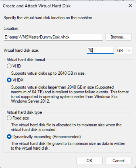Give description example location of this virtual disk C:\temp\VMSMasterDummyDisk.vhdx.