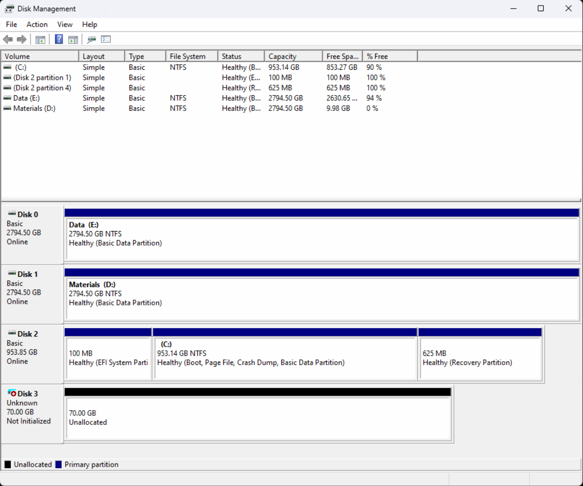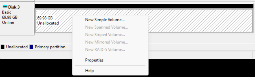 Use NTFS file type and rename this volume label same as created virtual disk name.