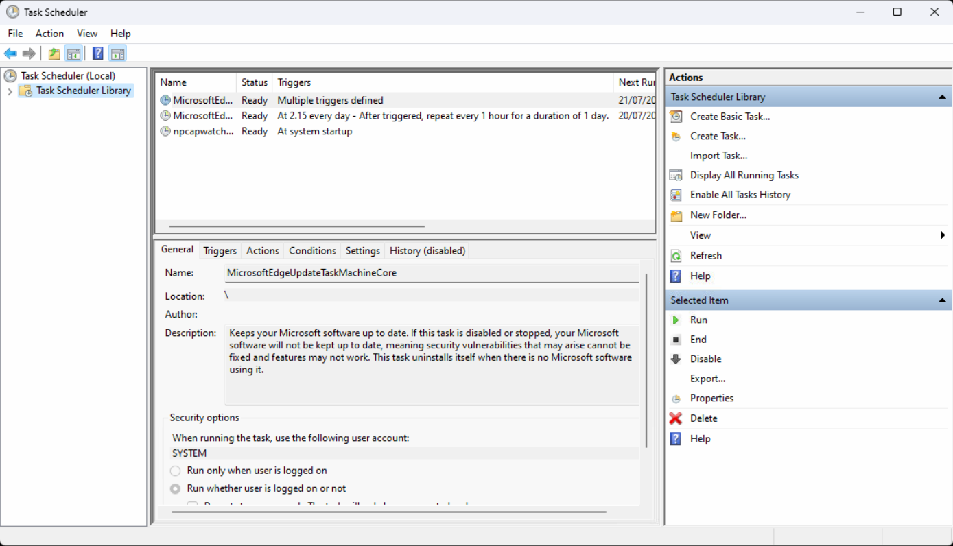 There is option Disable or Enable this task under Selected Item if that is needed.