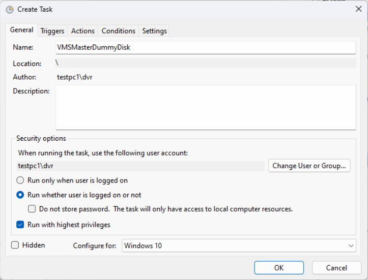 Name this task example Auto-Mount VMSMasterDummyDisk.