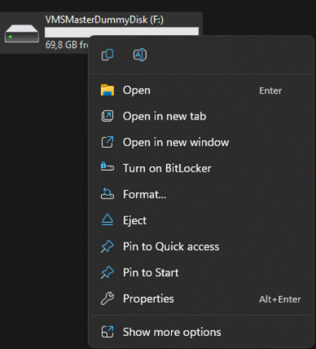 Now you can add this dummy disk to VMS Master Server using System Manager - Storage page.