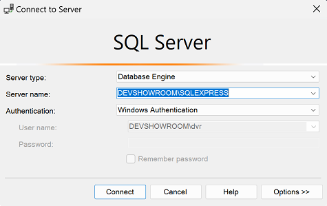 On Connect to Server window, check that you are making connection to correct server with Windows Authentication and click Connect.