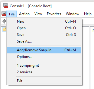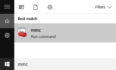 Open the Windows Start menu and enter mmc to open the Console Root.