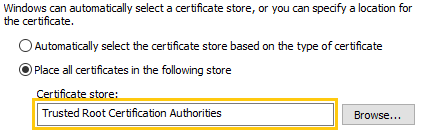 It is recommended to add the CA certificate to your Windows certificate store so your web browser won’t pop-up a security warning regarding invalid security certificate and won’t block the connection to the device. This will ensure a secure HTTPS connection to your devices.