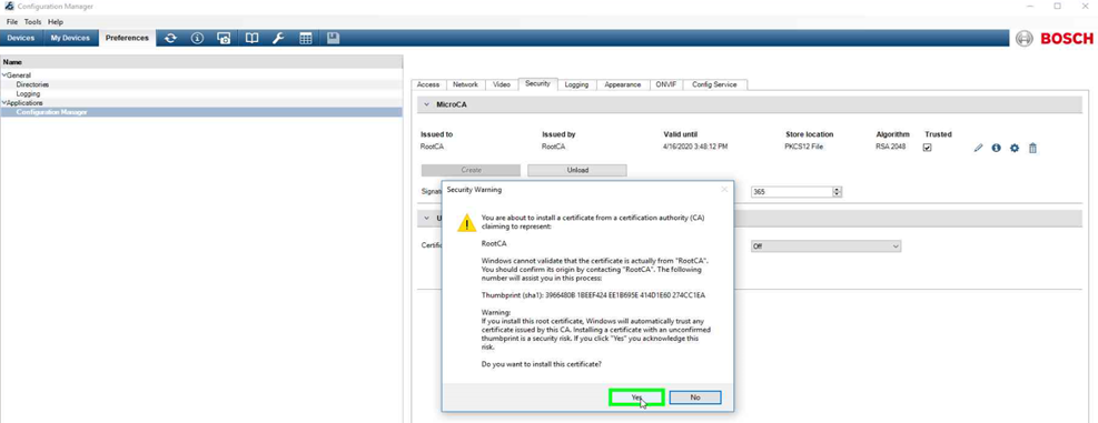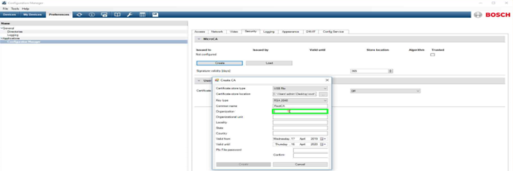 It’s needed to go in CM select Configuration Manager tab on the left side as in the picture below @Preferences, select -> Security Tab. Now we need to create a CA using the MicroCA from CM.