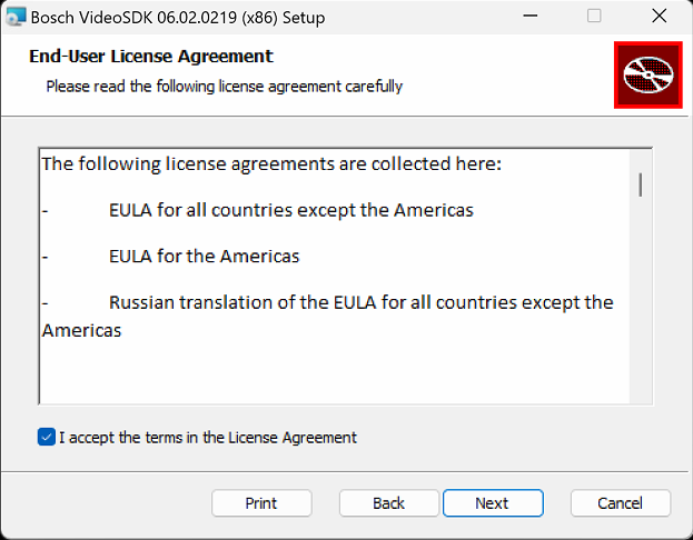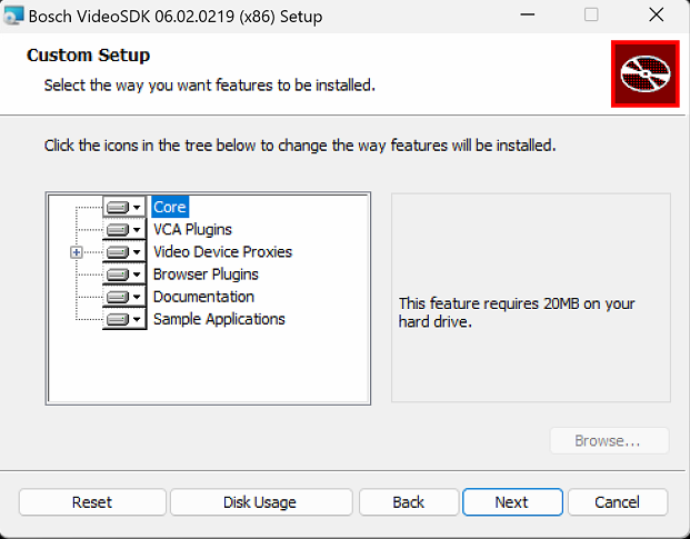 Now the installer opens the Bosch VideoSDK installation. Click Next to continue.