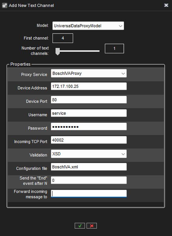 Bosch Proxy is a separate service that can be installed on a VMS server. With this service, the system can receive Bosch metadata from the camera. This proxy needs to be installed on all VMS servers where you want to fetch metadata from the Bosch camera. Proxy configuration happens using the VMS server Text Channels feature.