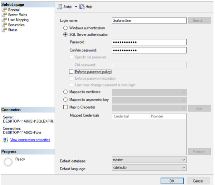 Login name: GrafanaUser