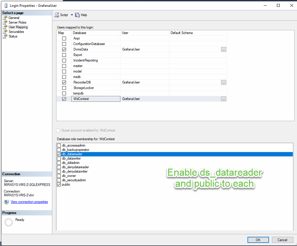Give db_datareader role for each of these databases.