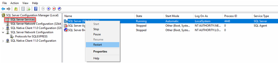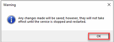 When this is done, press OK and you should see the Warning message what is saying that you need to restart the SQL service.