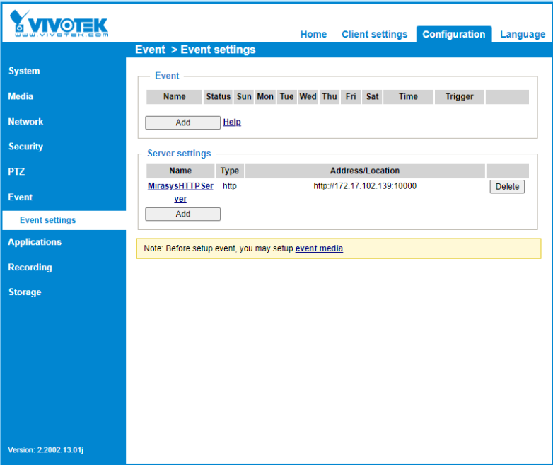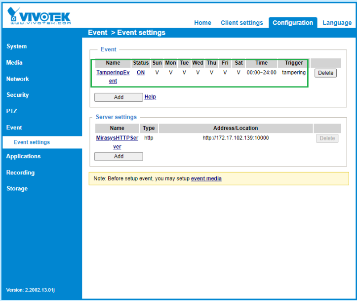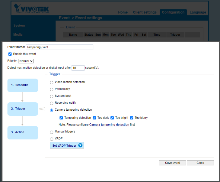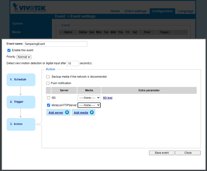 ith this integration you can receive tampering events from Vivotek IP-camera to Mirasys VMS.