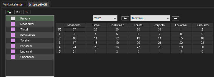 Erityispäivien asetusten avulla voit asettaa kalenteriin vapaapäivät.