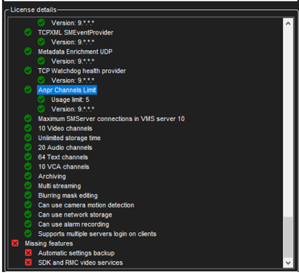 Mirasys VMS -palvelinlisenssi määrittää, kuinka monta ANPR-kanavaa voidaan lisätä.