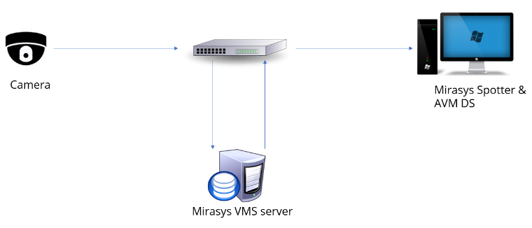 Normaalissa suoratoistoskenaariossa kameran kuva tulee VMS-palvelimelta.