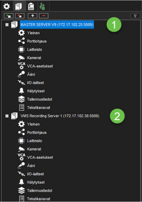 Master-palvelin ja 1 tallennus VMS-palvelin on lisätty järjestelmään