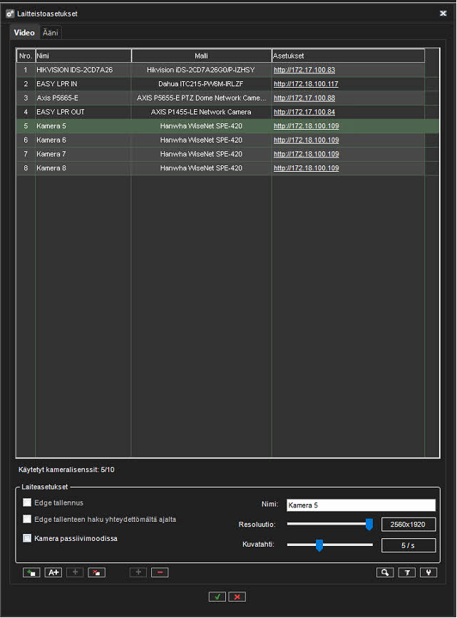 Tarkista, että kameran aikavyöhyke ja aika ovat samat kuin VMS-palvelimen