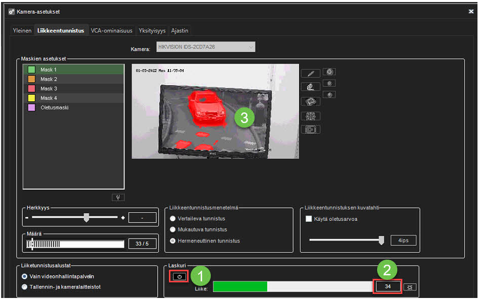 Tarkista liikkeentunnistuksen määrät