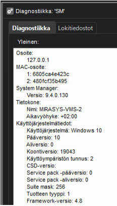 SM-Palvelimen diagnostiikassa voit tarkastella näitä tietoja:
