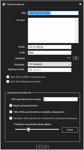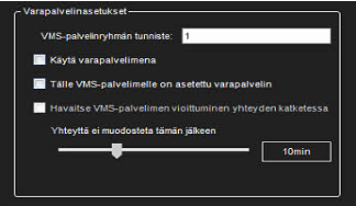 Tälle VMS-palvelimelle on asetettu varapalvelin