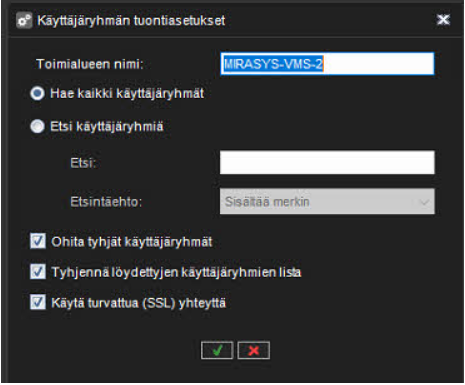 Valitse Tuo käyttäjäryhmät -ikkunassa käyttäjäryhmät, jotka haluat tuoda toimialueelta.