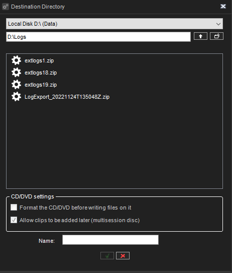 4. Select the storage device and the folder where you want to save the log files in the Destination Directory window.