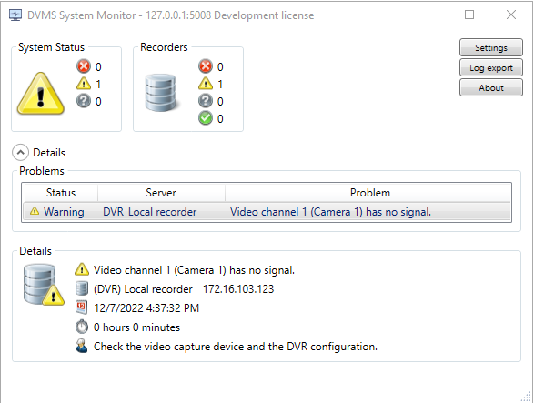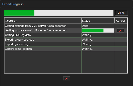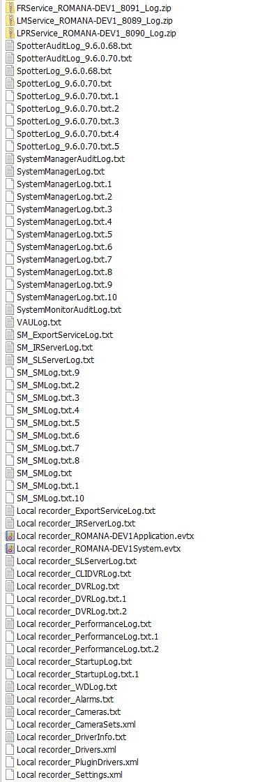 The System Monitor can collect SM server logs (also ones include Incident Reporting log, Storage Locker log, and Export services log), DVRs logs, clients' logs (Spotter, System Manager, etc.), and logs of all List management, Face Recognition, and License Plate Recognition services observed in the current system.