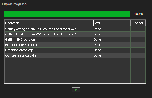 6. The system exports the files to a ZIP file. Send the ZIP file to the system supplier. Services log files are stored in inner ZIP archives in the main ZIP file.
