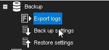 Open the System Manager application for export logs and choose the Export logs subitem in the Backup tree item on the System tab.