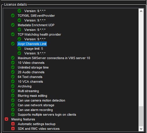 Mirasys VMS server license defines how many ANPR channels can be added.