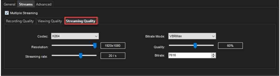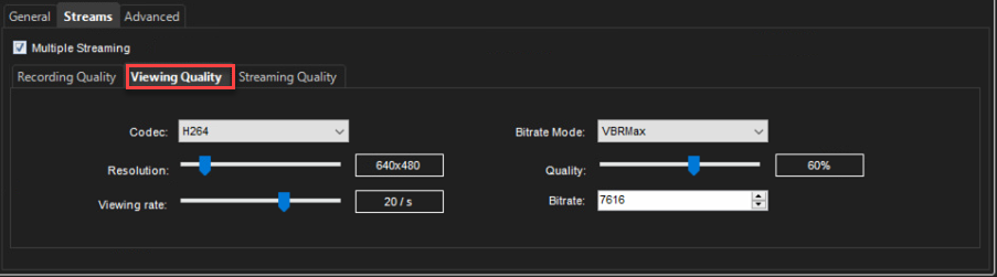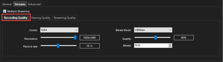 By default, Mirasys VMS receives recording quality stream from the camera.