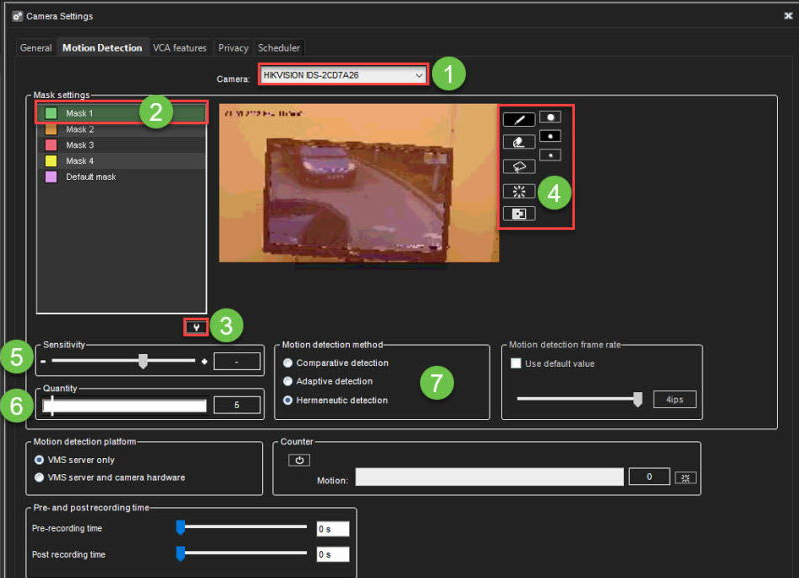Select the motion detection method: comparative, adaptive, or hermeneutic motion detection.