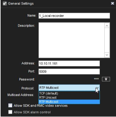 In the server’s General settings, change the protocol from TCP (default) to RTP Multicast.
